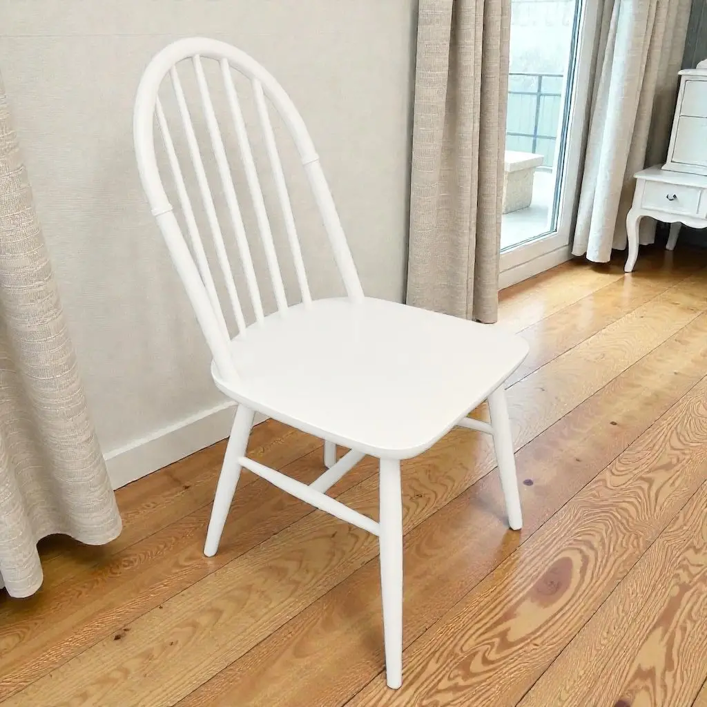 Sandalye: Masif ahşap gövde, beyaz boya.