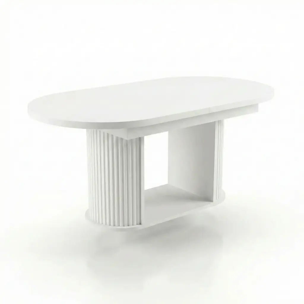Sonsuz beyazın zarafetiyle tanışın. Bohem Açılır Masa, minimalist tasarımı fonksiyonel detaylarla buluşturan bir tasarım harikasıdır. Dikey oluklu panel detaylarına sahip sütun ayakları, masaya mimari bir derinlik kazandırırken; oval üst tablası mekandaki keskin hatları yumuşatır. Hem günlük kullanımda hem de özel davetlerde evinizin en dikkat çekici mobilyası olacak.
