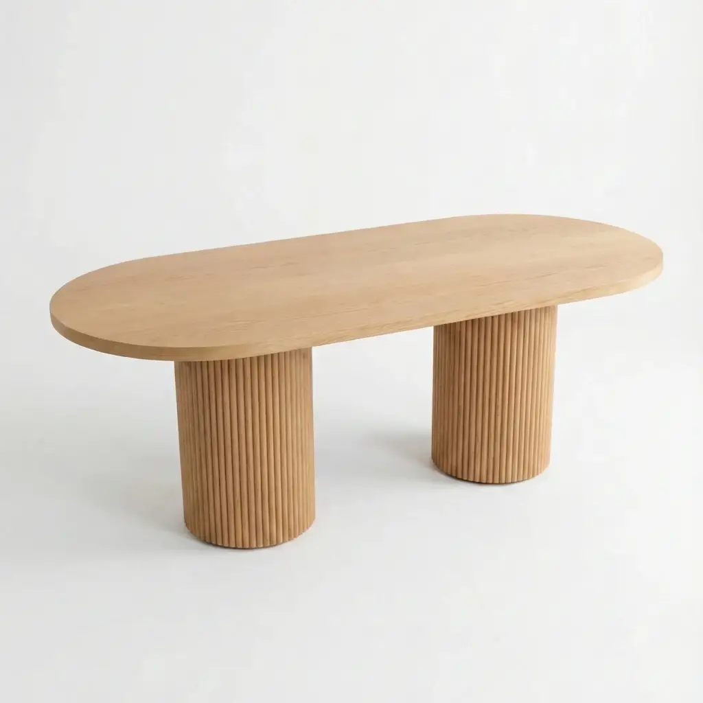 • Minimalist Sütun Ayaklar: İki adet geniş silindir ayak, masaya hem heykelvari bir duruş kazandırır hem de sarsılmaz bir denge sağlar.