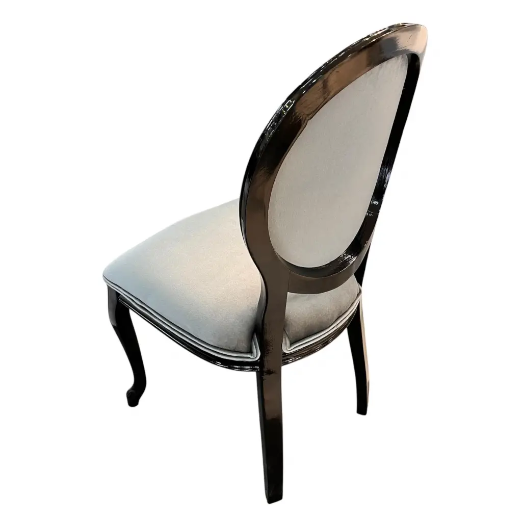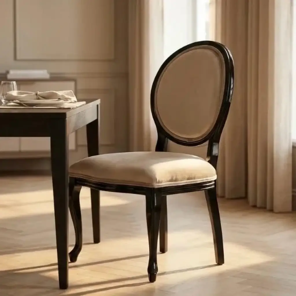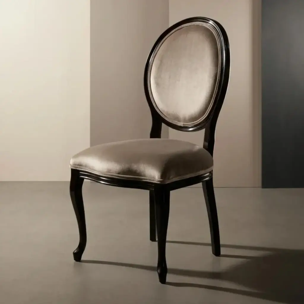 Madalyon Döşemeli Siyah Ahşap Sandalye, klasik ve zarif tasarımıyla mekânlarınıza sofistike bir hava katar. Yuvarlak madalyon sırt tasarımı ve konforlu döşemesiyle hem estetik hem de rahat bir oturum sunar. Siyah ahşap gövdesi modern görünüm sağlarken, döşeme detayı şıklığı ön plana çıkarır. Kafe, restoran, otel ve ev dekorasyonlarında kullanılmak üzere tasarlanmıştır.
