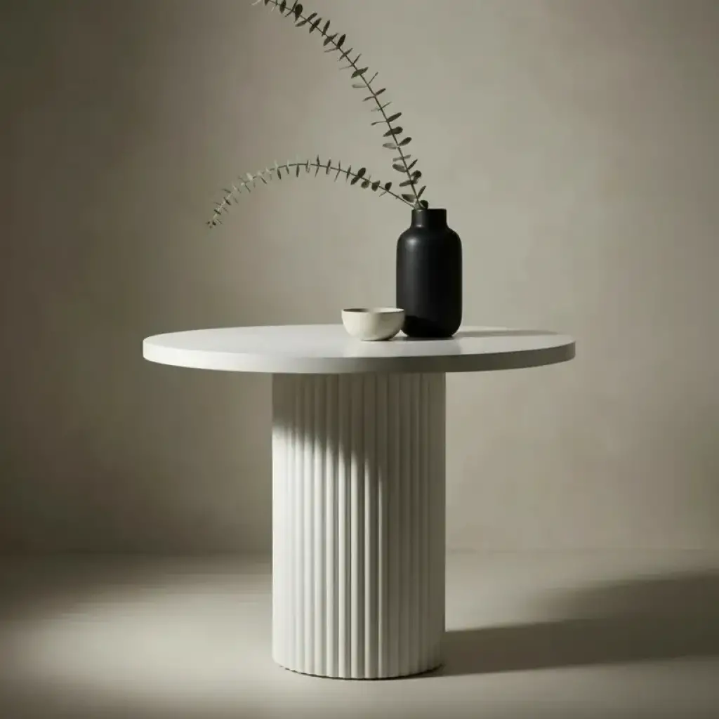 Modern minimalizm ile bohem dokunuşların eşsiz uyumu! Yuvarlak Kayın Masa, mekanınıza sofistike bir derinlik katmak için tasarlandı. Gövdesindeki dikey fitilli (slat) detaylar, masaya mimari bir karakter kazandırırken; yuvarlak hatları, sosyal alanlarınızda sıcak ve akıcı bir iletişim ortamı yaratır. Kayın ağacının sağlamlığı ile ağaç hissini bir araya getiren bu parça, evinizin veya ofisinizin odak noktası olacak.